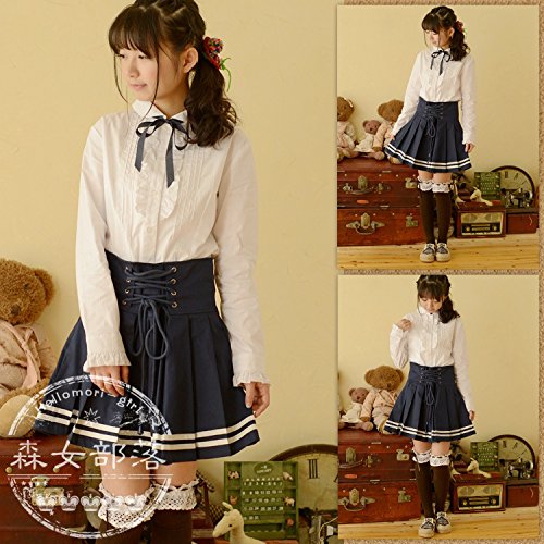 -. Title : bq1208bl 森ガール スカート レディース セーラースカート 海軍ミニスカート 無地 ウェストレースアップ ボトムス プリーツ Aライン カジュアル ミディアム (L)