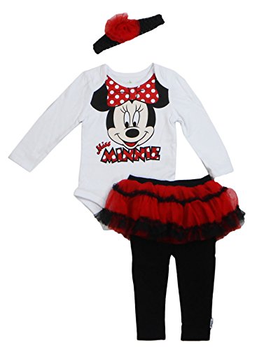 -. Binding : Apparel -. Brand : Disney -. Department : baby-girls -. Feature : Officialy Licensed Disney Merchandise / Onsie 100% Cotton, Pants 100% Cotton, Skirt 100% Polyester, Headband 100% Polyester / Onsie with Long Sleeve; Binding and Ring Snaps for Closure, Solid Jersey Leggings with Tutu / Crochet Headband with Crepe-netting Rosette, Opaque Screenprint with Red Glitter / Features Disney Minnie Mouse -. Model : DMAIG7785 -. ProductGroup : Apparel -. ProductTypeName : SHIRT -. Title : Disney Minnie Mouse Infant Tutu Leggings with Headband Set