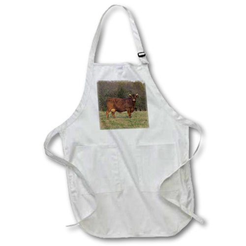 3dRose apr_21157_1 Cow on The Green Full Length Apron with Pockets, 22 by 30-Inch, White