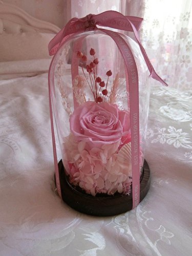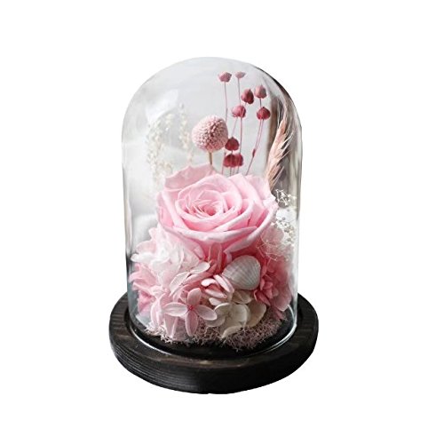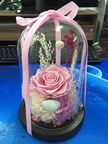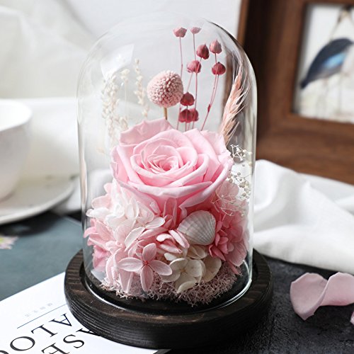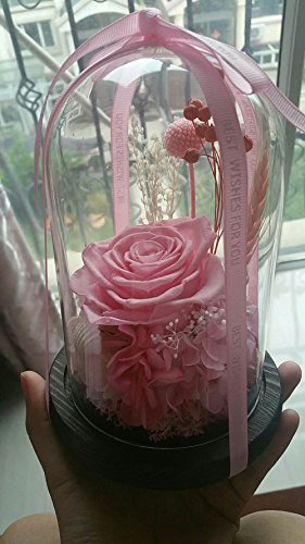 Amoleya 4.9 Inch Handmade Preserved Rose Enchanted Rose that Lasts in Glass Dome,Pink