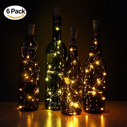 Warm White Wine Bottle Cork Lights, 6 Packs Copper Wire Fairy Starry LED String Lights for Bottle DIY, Party, Decor, Christmas, Halloween, Wedding or Home Mood Lights