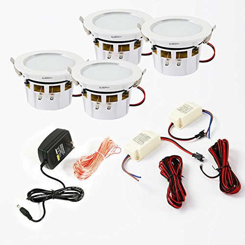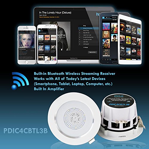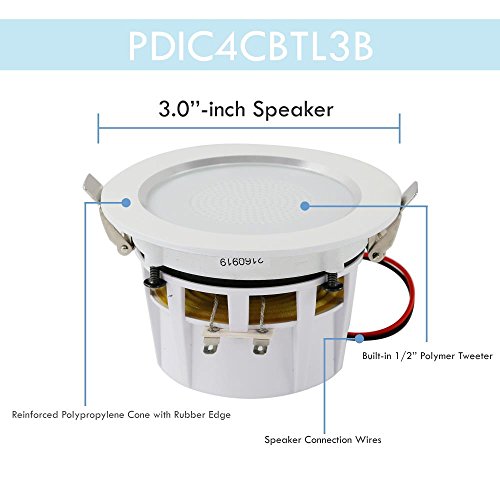 Includes (4) 3.0’’-inch Speakers Bluetooth Wireless Music Streaming Lightweight Aluminum Alloy Frame Housing Built-in LED Light: High-Efficiency, Low Power Consumption Full Range Stereo Sound Reproduction 4-Channel Digital Amplifier Spring-Loaded Clips for Easy Installation Reinforced Polypropylene Cone with Rubber Edge Simple Speaker Connector Post Mounts Flush on Walls or Ceilings Perfect for Custom Installations & Applications ABS Construction Bluetooth Connectivity: