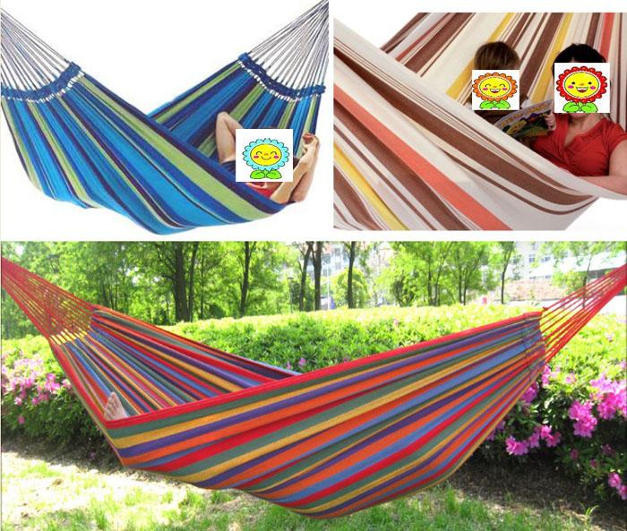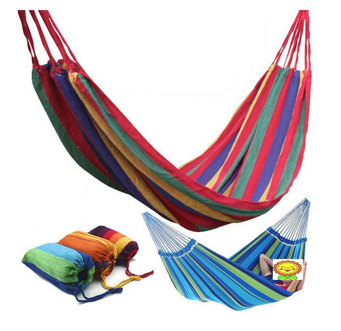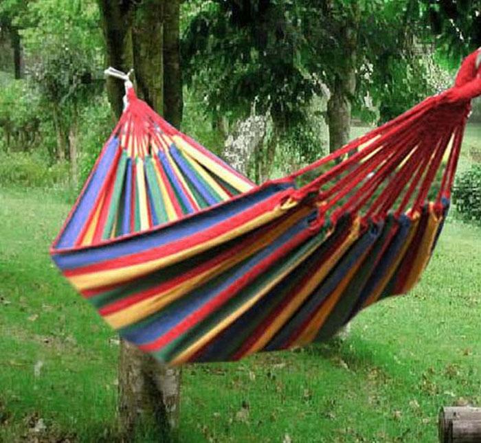 This Deluxe Double Hammock is portable, stylish, and will bring you into the world of tranquility and relaxation. This meticulously constructed hammock will form an eye-catching piece of furniture from your front yard to the pool, or add excitement of your vacation. Made from durable cotton canvas, and designed for ultra comfort, it is perfect for the yard, the balcony, hiking, camping, outdoor leisure. Relax by yourself or share with someone special.