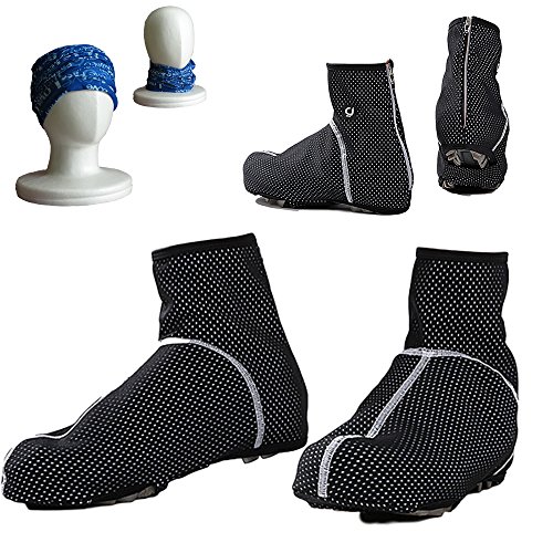-. Feature : 表面に防水、防風生地を使用し風、雨から足下を守る防寒サイクルウェア、シューズカバー / 裏地は保温効果の高い裏起毛を使用。体温を蓄え暖かい状態を保ちます。 / 裏起毛は通気性にも優れているため運動時にもムレにくくなっています。 / 背面はファスナー仕様になっているので着脱が簡単で靴を汚れから守ります / スポーツバンダナをセットでお付けしております。