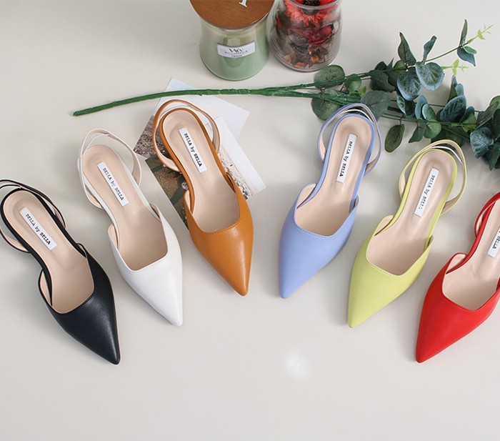 商品名:パンプス レディース ローヒール ポインテッドトゥ スリングバック 2018 春 ファッション 靴 婦人靴