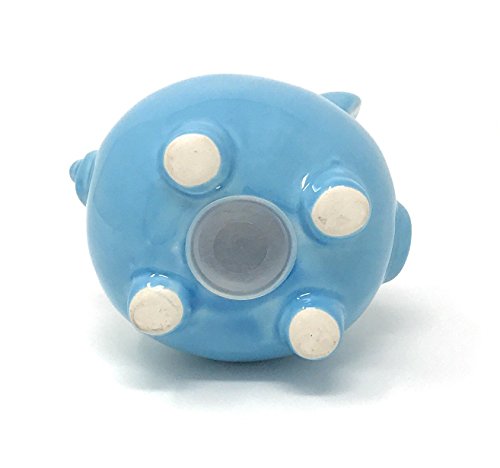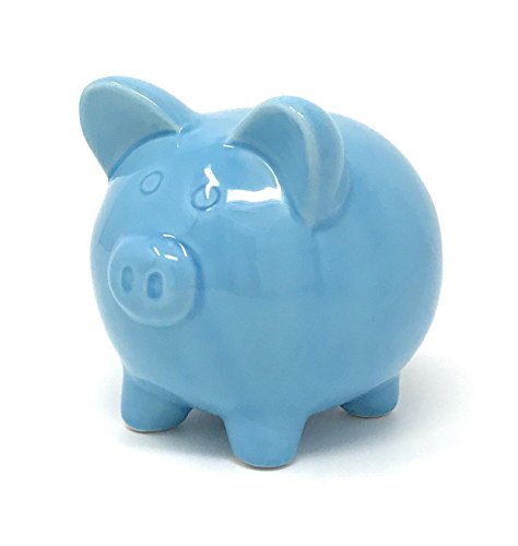 Product DescriptionMini Ceramic Blue Piggy Bank Measures 3.625" x 5" x 3.75"0