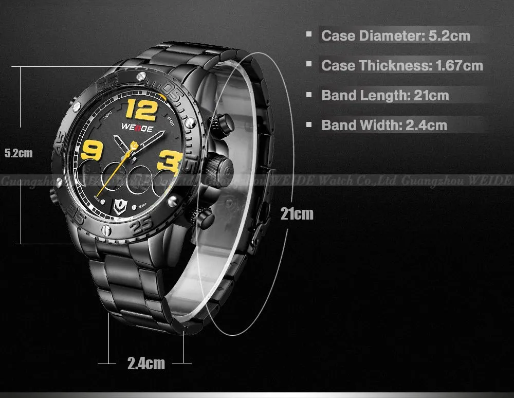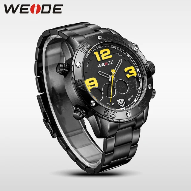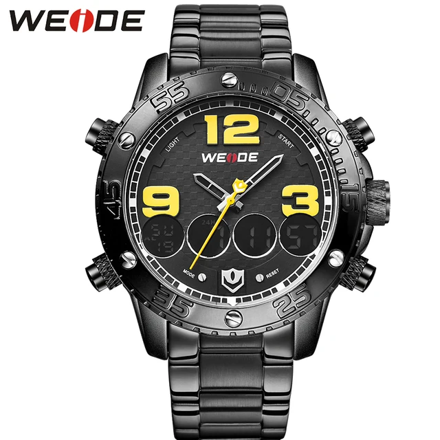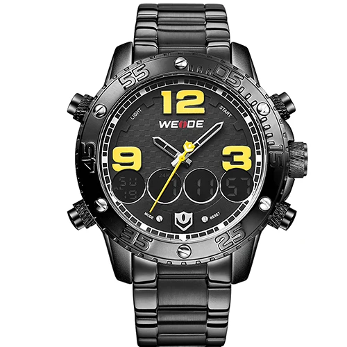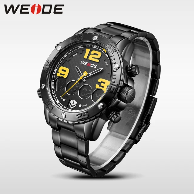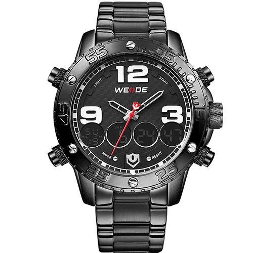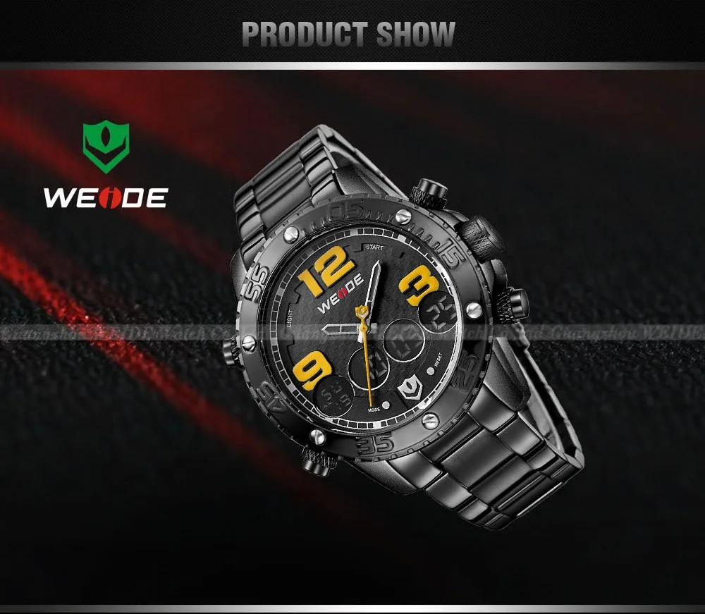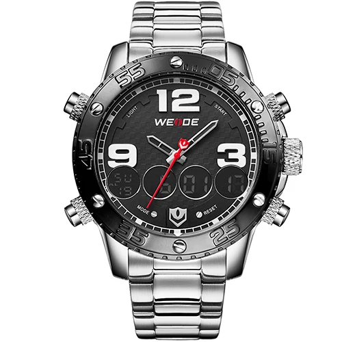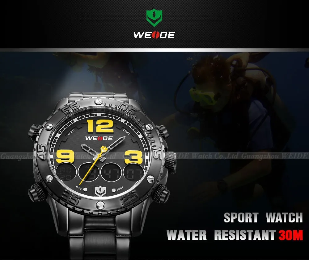 | [해외] 웨이드 아날로그 디지털 스포츠 시계 남성 석영 캐주얼 시계 블랙 스테인레스 스틸 밴드 큰 다이얼 Hardlex 스톱워치 백라이트 날짜 |