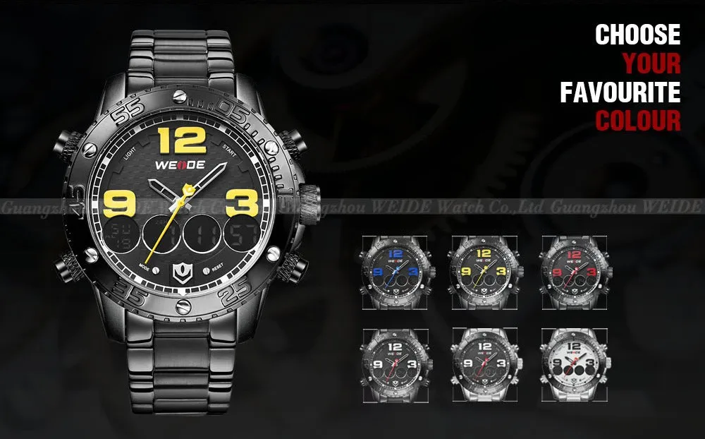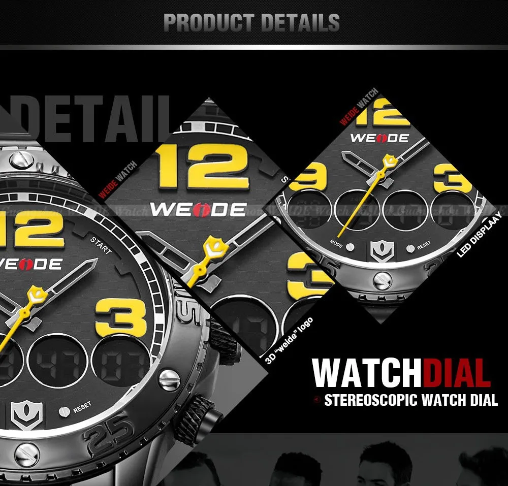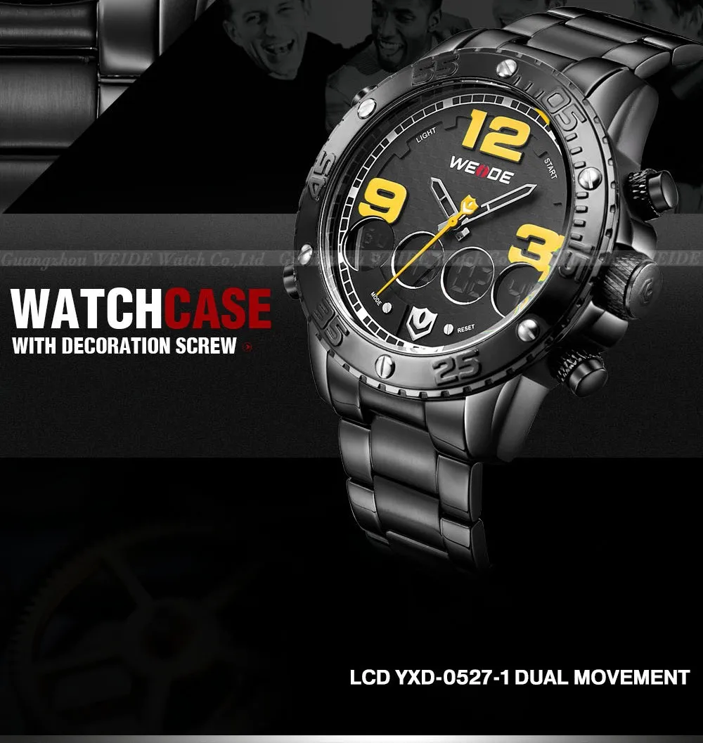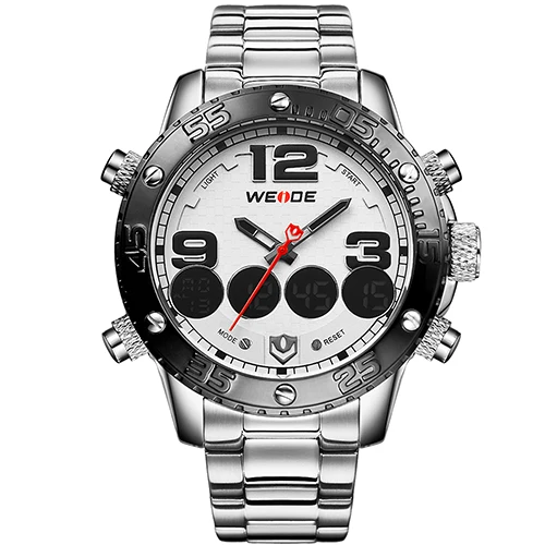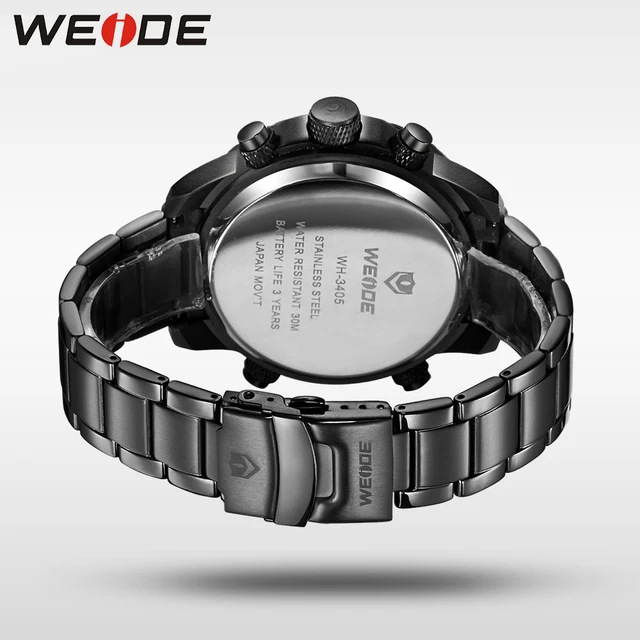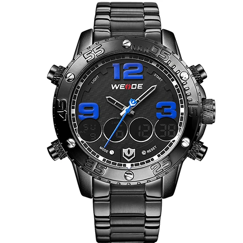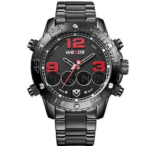 | [해외] 웨이드 아날로그 디지털 스포츠 시계 남성 석영 캐주얼 시계 블랙 스테인레스 스틸 밴드 큰 다이얼 Hardlex 스톱워치 백라이트 날짜 |