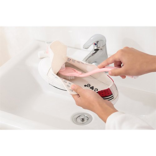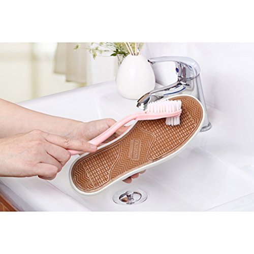 OUNONA Shoes Cleaning Brushes Double Sided Long Handle Wash Cleaner Scrubber (Pink)