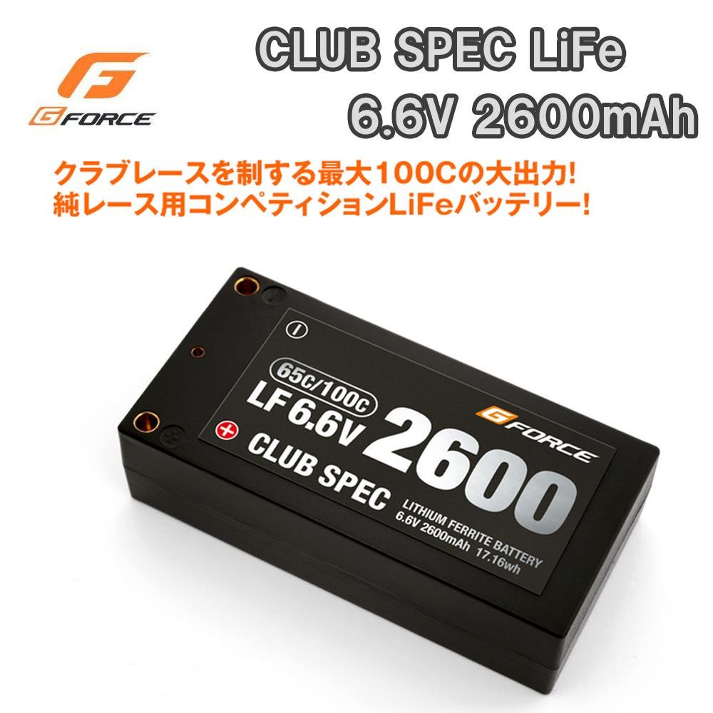 通電効率に優れた4mmゴールドプラグ採用。連続65C、瞬間100Cの高出力仕様です。 製造国:中国 素材・材質:リチウム、フェライト 商品サイズ:92.5×46×24mm 重量:170g 仕様:電圧:6.6V容量:2600mAh 付属品:取扱説明書 ※サプライヤー直送品 ご注文後2~3営業日後の出荷となります【商品名】G-FORCE ジーフォース CLUB SPEC LiFe 6.6V 2600mAh GFG102