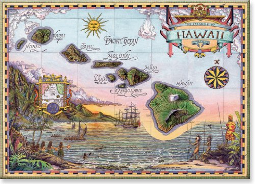 Hawaiian Art Collectible Refrigerator Magnet - Map of Old Hawaii