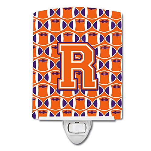 Caroline's Treasures Letter R Football Orange, White and Regalia Ceramic Night Light, 6 x 4", Multicolor