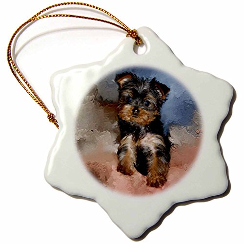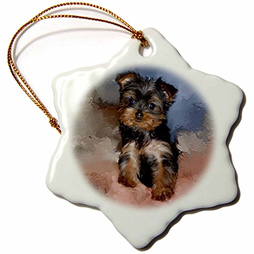 3drose Toy Yorkie Puppy Snowflake Porcelain Ornament, 3-Inch