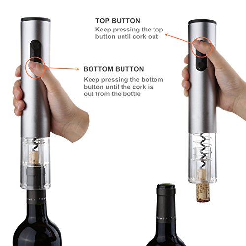 How to use the wine opener? 1. Remove the foil with the foil cutter firstly; 2. Place the wine opener on top of a wine bottle vertically; 3. Simply press the lower part of the switch to start, then it will gradually remove the cork from the bottle, stop once the cork has been fully removed from the bottle; 4. Remove the cork by pressing the upper part of the switch.