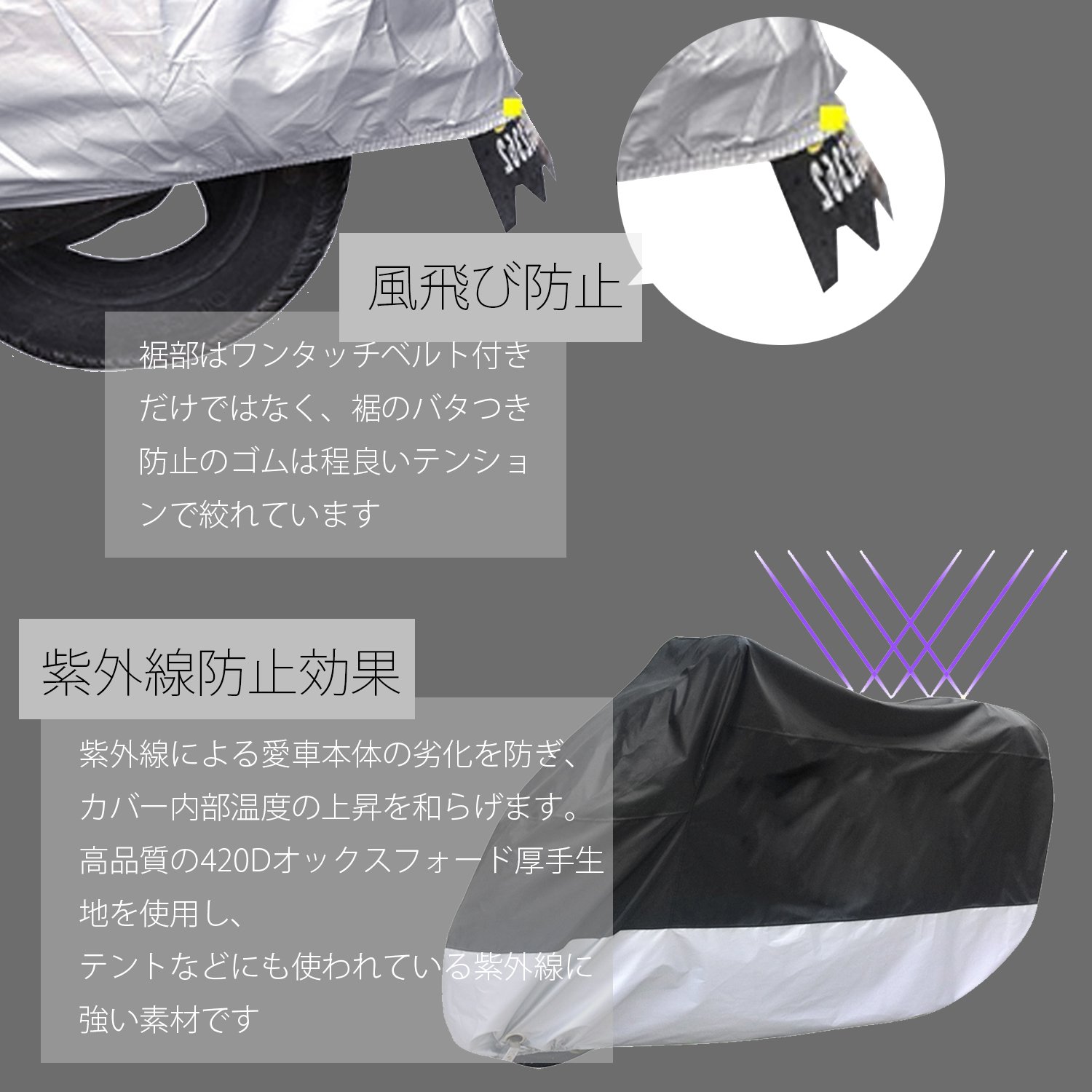 A rugged type bike cover that adopts high-class fabric.
