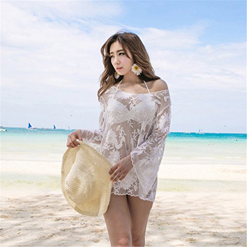 Title : Ayliss Women's Long Sleeve Embroidery Lace Mesh Bikini Swimsuit Cover up Top White (White)