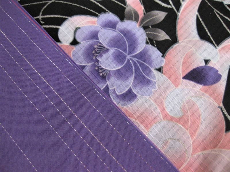 帯は薄い紫色にシルバーラメのボーダー入りですっきりした印象です。