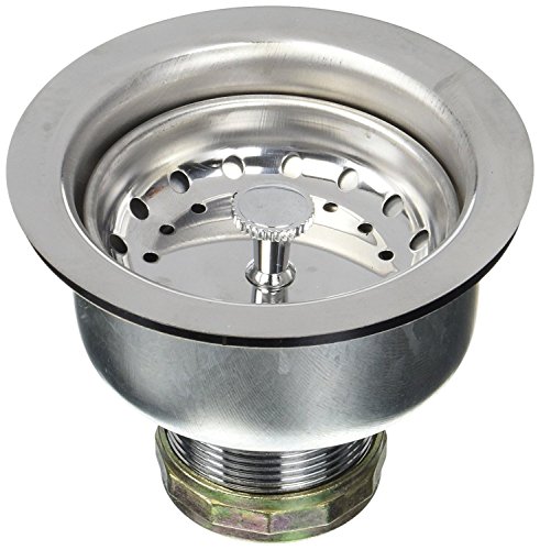 Everflow 3-3/4 Inch Long Extended Shank Stainless Steel Sink Strainer 7531 with Stainless Steel Basket Double Cup Design with Locking Shell Fits Sinks w/ 3-/2 Inch w/ 4 Inch Opening, 4-1/2 Inch Flange