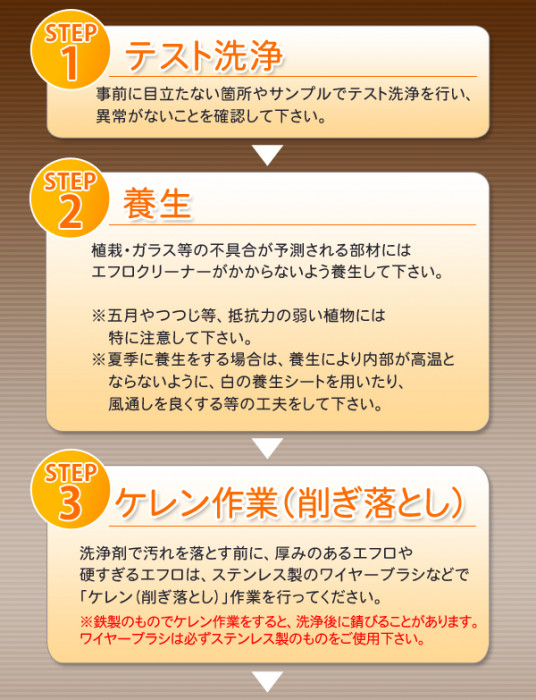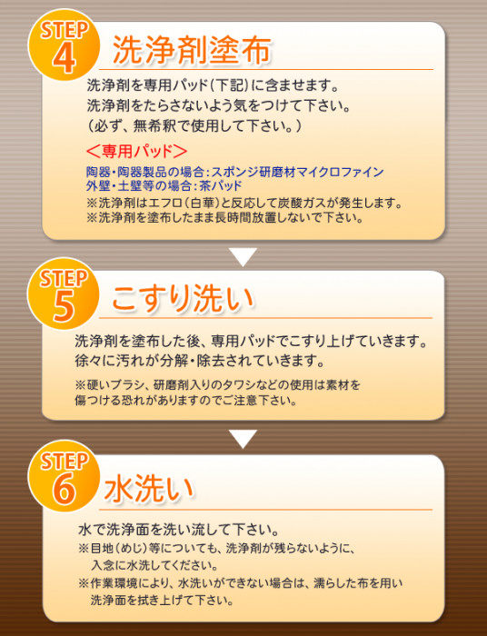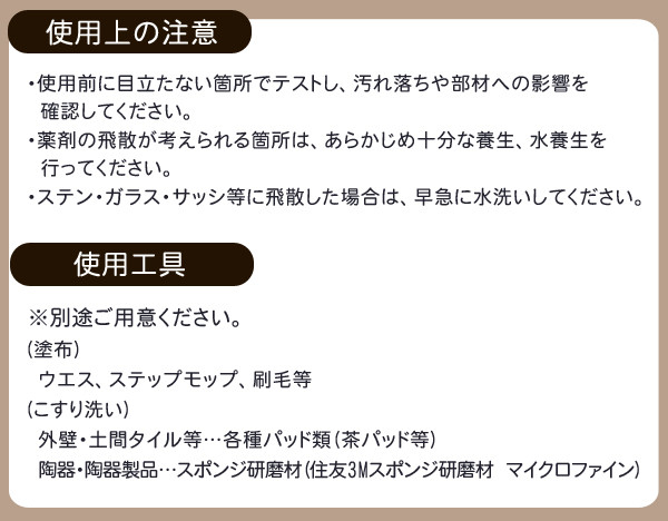 | ガス臭がなくエフロレッセンスを溶解除去します。 |