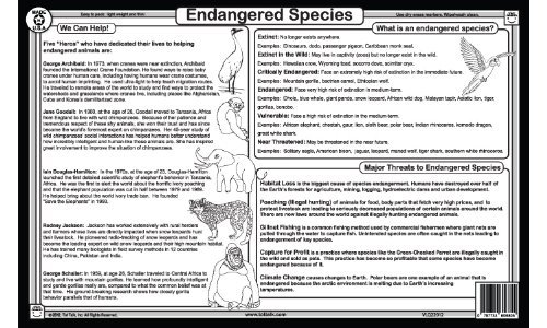- Learn about beautiful animals of our world that are seriously threatened and endangered and read stories of heroes who have dedicated their lives to helping save these animals and their habitats