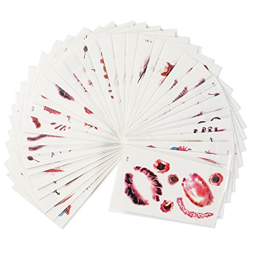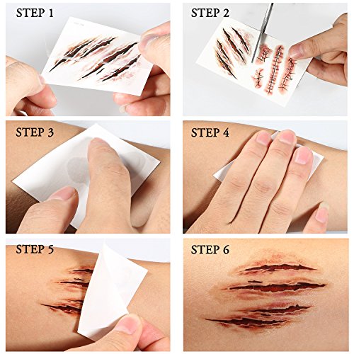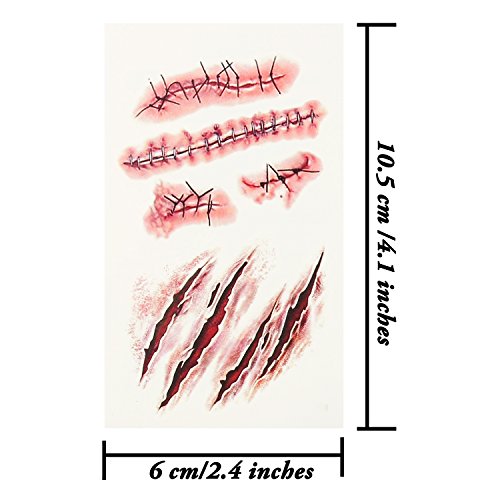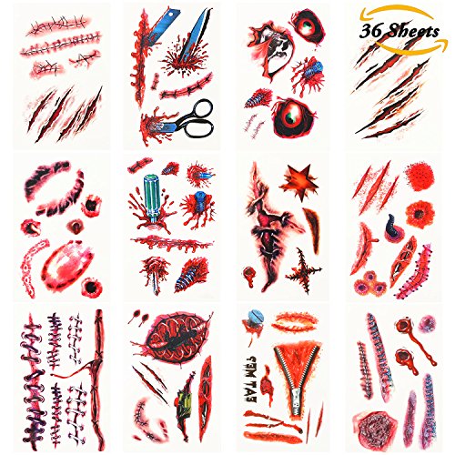 -. Title : Aneco 36 Sheets Horror Body Scar Tattoo Temporary Stickers Scab Bloody Tattoo Stickers Waterproof Temporary Tattoo Sticker for Cosplay or Halloween Party