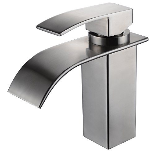 KES SUS304 Stainless Steel Waterfall Bathroom Vanity Sink Faucet with Extra Large Rectangular Spout Lead-free, Brushed Finish, L3186A