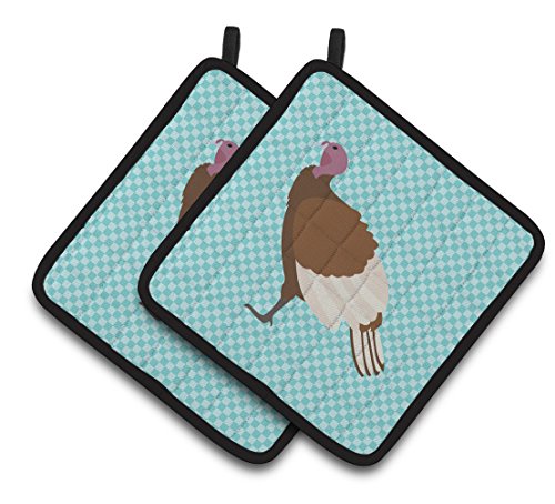 Caroline's Treasures BB8156PTHD Bourbon Red Turkey Hen Blue Check Decorated Pot Holder, 7.5" x 7.5", Multicolor