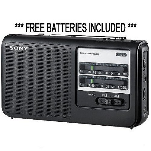 Sony ICF-38 Portable AM/FM 2 Band Radio with Free AA Batteries