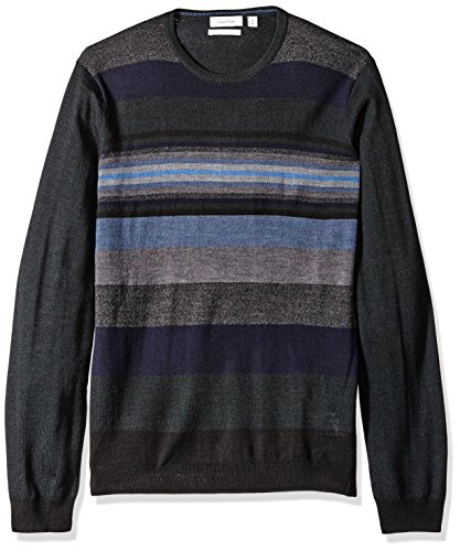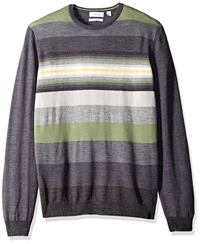 Calvin Klein Men's Merino Pop Stripe Crew Neck Sweater