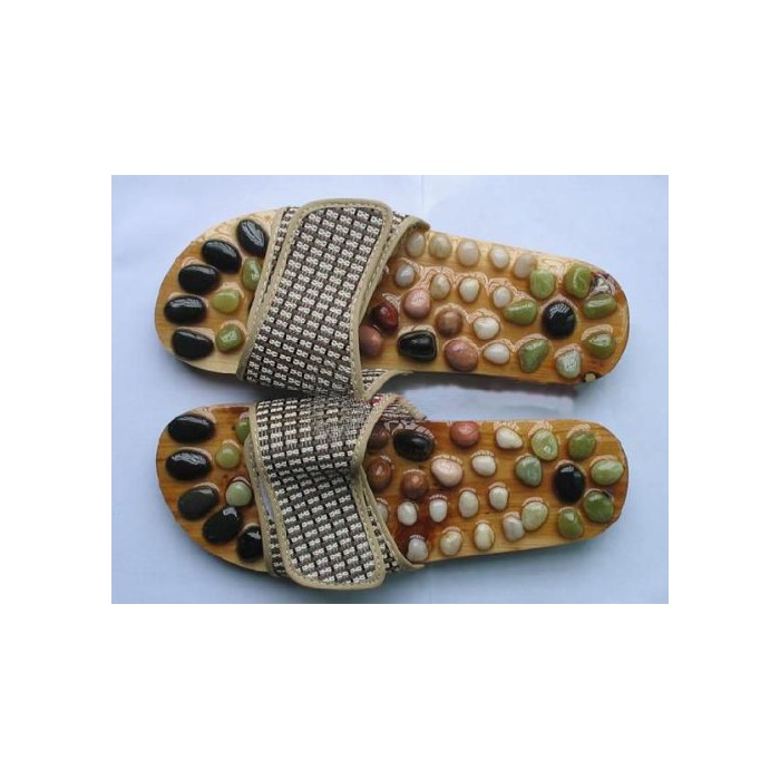 매직 테이프(벨크로)나와 그쳐 신는 타입의 천연석 풋 맛사지 건강 샌들.