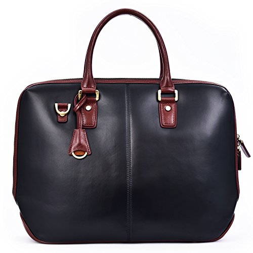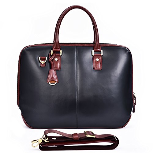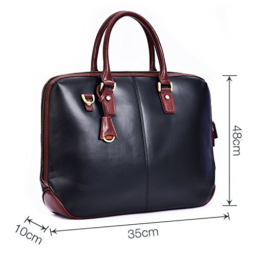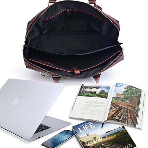 -. Feature : Superior Genuine Leather, Lining texture: Polyester lining, durable and red wash canvas fabric, SBS zippers, and quality hardware ensure long lasting durability / Full leather and durable hardware; Adjustable, detachable leather & braid shoulder strap. Dimensions (Lx Hx W): 48*35*10cm / Three layer design. Interior main compartment pocket is perfect for up to 17 inch Laptop like Mac book Pro and computer compartment pocket fits for 19 inch laptop, zip wall pocket, cell phone holder and wallet holder and several pen holders / All in one design. No extra external structure.Maximum security for valuables is guaranteed.This strong leather is very durable and can hold all of your necessities for your everyday use. Perfect as a gift for someone with a new job, your spouse, new college student, etc. You will be able to use this bag for many years to come / A nice briefcase is for a successful man. Take this bag to work, give other a professional identity