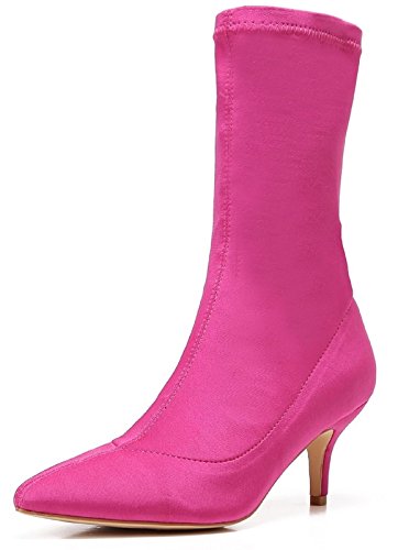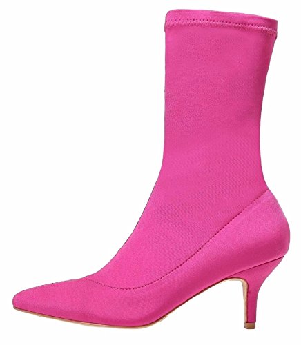 Maclin J 224-1 Elastic Stretchy Sock Ankle High Boots Kitten Heel Pointed Toe Fuschia