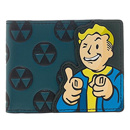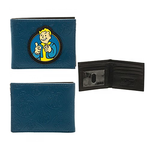Product Description1 x Fallout Vault Boy Bi-Fold Wallet, Blue. Embossed image of Vault Boy. Includes a billfold, 3 card slots and 1 clear ID display. Officially Licensed Products.0