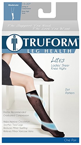 Studio : Surgical Appliance Industries Publisher : Surgical Appliance Industries Binding : Health and Beauty Product Description Truform 1782 part of the "Lites" series for women. Designed to resemble ladies' sheer denier nylon hosiery with the added health benefits of compression technology. Five intervals of therapeutic graduated compression is greatest at the ankle, then gradually decreases up the leg. Graduated compression provides two primary benefits to the legs: increased pressure on tissues beneath the skin helps reduce and prevent swelling, and the compression action helps control the size (diameter) of the superficial veins for increased blood flow. The amount of compression is expressed as mmHg (millimeters of mercury). Moderate 15-20 mmHg compression is doctor-recommended to help relieve tired, heavy, aching legs; spider veins, varicose viens, and swelling of the leg and feet to maintain good circulation and leg health. The designer-knit Dot pattern styling is comfortable and easy to apply. The look and feel of fashionable stockings, with medical grade compression technology to promote recovery and revitalize legs. Completely latex-free. Use corresponding size chart. Package contains 1 pair. Truform graduated compression support hosiery works with your body to help maintain good circulation and leg health. Truform combines the best materials, the latest methods of semi-automated manufacturing, and hand craftsmanship to produce a high-quality product at affordable prices. Truform is part of SAI Brands, a family owned and operated manufacturer since 1893. Truform products are proud to be made in America. 0