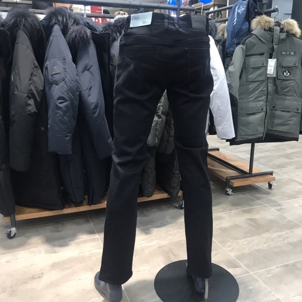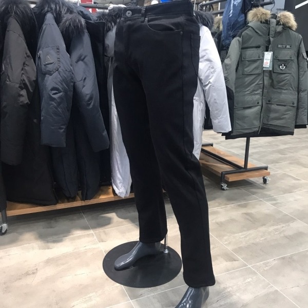 컴포트핏의 본딩 데님 상품입니다.밑위가 조금 길게 나오고 통이 붙는걸 싫어하시는 고객님께 추천해 드립니다.마네킹: size 34