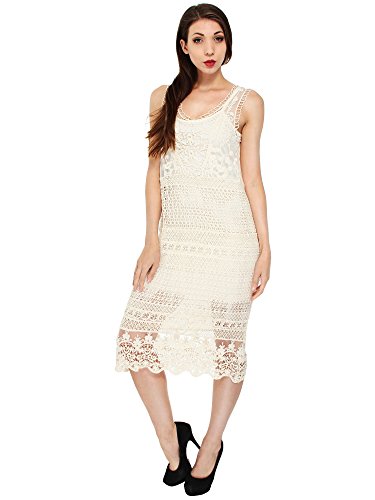 - Feature : Crochet overlay dress / Great for layering / Comfortable, loose fit / Cotton blend / Beige