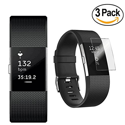 Fitbit Charge 2 Screen Protector, Fitbit Charge 2 Full Screen Protector, FlipCase Full Coverage Screen Protector for Fitbit Charge 2 HD Clear Anti-Bubble Film,3x Pack