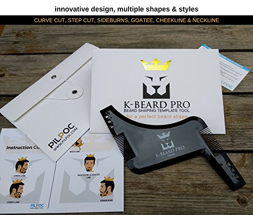 PILPOC K-BEARD Pro Beard Shaping Tool & Beard Comb, Beard Shaper, Premium Quality Beard Template Tool with Printed Instruction Guide and E-Book