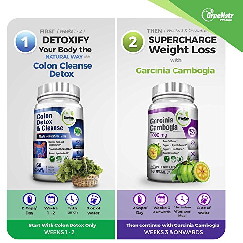 YOU WILL LOSE WEIGHT FASTER WITH A COMPLETE FAT BURNING SYSTEM...It's a proven fact! ... FIRST: Detox your body the natural way with Colon Detox & Cleanse, THEN Supercharge weight loss with ALL NATURAL Garcinia Cambogia Extract 1000mg at 60% HCA for even better results!