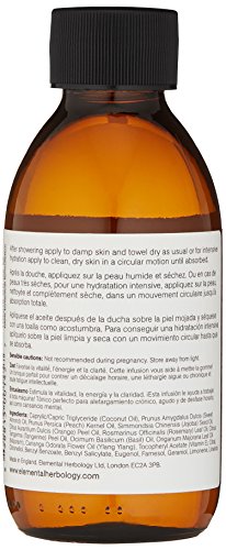 ReleaseDate : 2016-08-09 Studio : Elemental Herbology Publisher : Elemental Herbology Binding : Health and Beauty Product Description This body infusion massage oil helps you fire on all cylinders! The Fire element promotes vitality and energy, stimulates the body and promotes passion. With Basil, Sweet Orange, Tangerine, Marjoram, Ylang Ylang and Rosemary to help promote vitality, energy and clarity. Basil, Rosemary and Sweet Orange help to stimulate the body and mind Peach Kernel, Coconut, Jojoba and Sweet Almond nourishes and moisturizes the skin Vitamin E helps protect and repair the skin 0