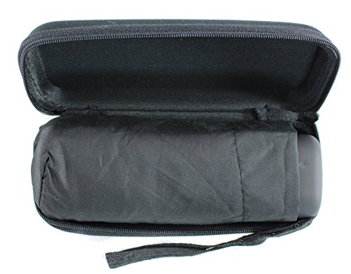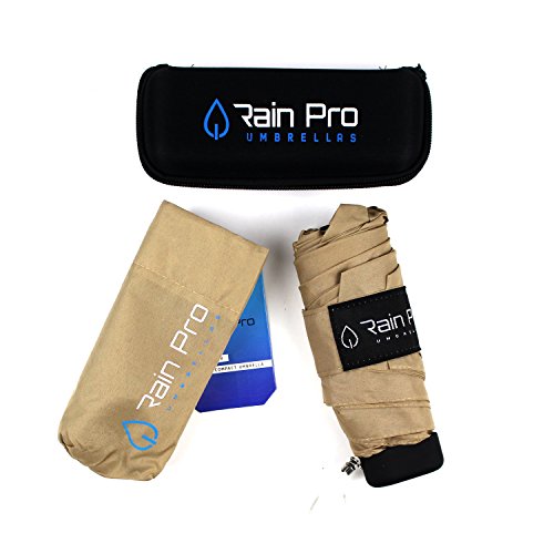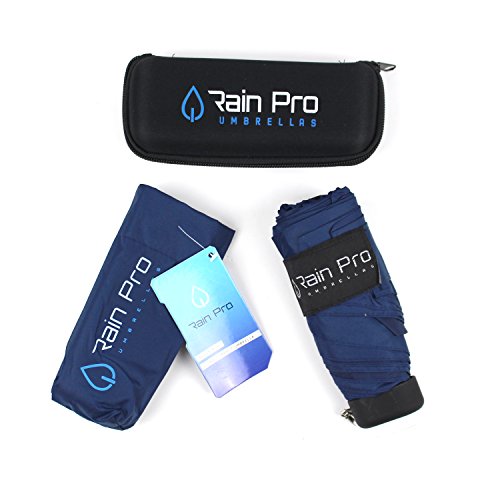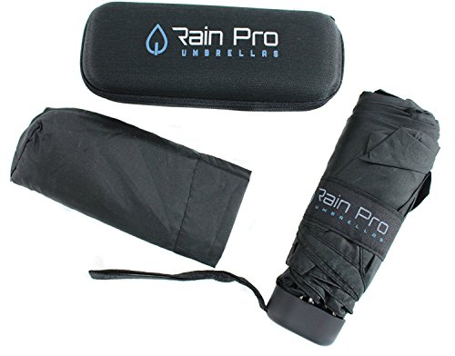 Product Description Rain Pro ultra compact, micro, glove box or travel umbrella in black. This conveniently small sized umbrella comes with a hard zippered case for easy storage in your glove box, back pack, briefcase, locker or purse. It has a standard 39" span and 22" height. The mechanism is manual. The case measures 6.75" long by 2.5" wide and 1.5" high. This lightweight umbrella is perfect for travel too. They also make appreciated gifts. 0