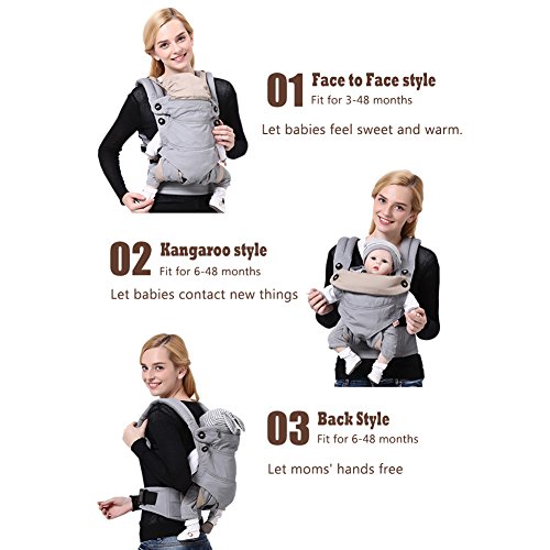 -. Feature : 3 in 1 baby carrier that supports up to 5 different carry positions, labor saving more than 70% / Light and thin sun shade designed for better protect baby from sun or wind.Wide padded Waist Belt for lumbar support and adopt the waist cushion design, protect mother lumbar spine. / Dual Front detachable cover design: one side is flower and another side is pure color to meet different likes, keep warm in winter, and take it down mesh fabric is useful to release heat in hot summer. / Suitable for outdoor travel, household chores, baby sleep and so on in any season / Plese note max capacity is 20 kg for baby who is from 3 to 48 months, but Back and Kangaroo position only suit for 6 to 48 months.