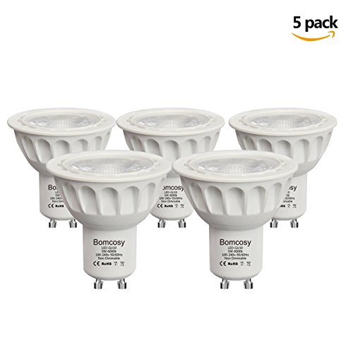 Bomcosy 5 Pack 5W GU10 LED Spot Light , Cold White 6000K LED Bulb, Replace 50 W Halogen Spot, CRI>80,450LM, 35 Degree Beam Angle, Not Dimmable, AC 100-240V