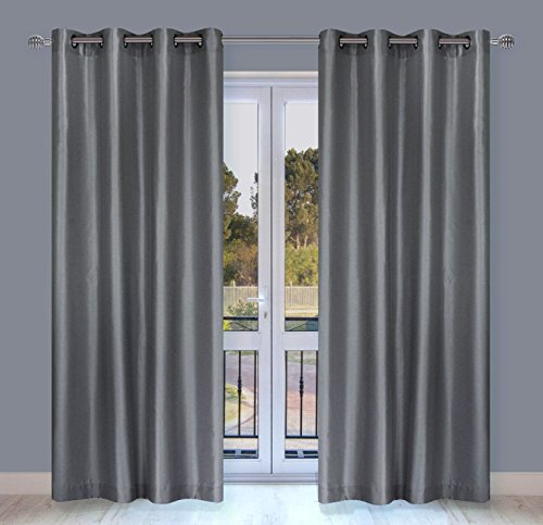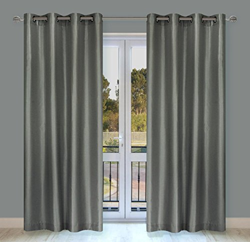 Add fabulous to your windows with timeless LJ Home Fashions Silkana curtains. Grommet top panels showcase faux silk fabric. Woven fabric has a soft sheen and subtle texture. Curtains are light filtering. Available in over 25 neutral and trending colors. Set includes 2 curtains. Each panel is 56"x88" inches. 100-percent polyester. Dry cleaning recommended.Feature