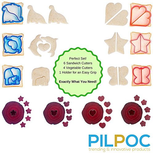 PILPOC 6 Sandwich Cutters, 4 Mini Vegetable Cutters and 1 Holder (11pcs Set), Crust, Bread, Cookie & Fruit Cutters - Make Meal Time Fun For Kids and Add Creativity To Your Kitchen