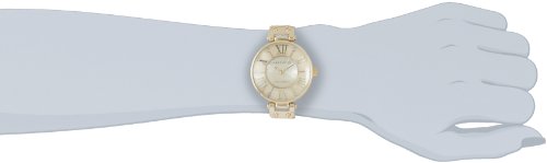 - Feature : 34 mm polished gold-tone case with hinged, t-bar lugs / Gold-tone snake print genuine leather strap with gold-tone stainless-steel buckle / Gold-tone genuine mother-of-pearl dial with gold-tone roman ii, iv, vi, viii, ix & xii and markers at all other hours / Gold-tone hour, minute and second hands / Water resistant to 99 feet (30 M): withstands rain and splashes of water, but not showering or submersion