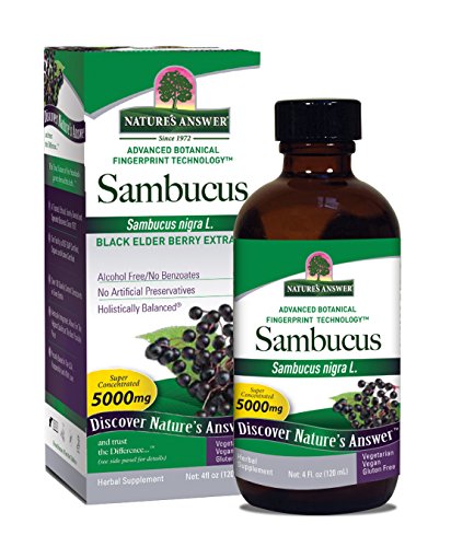 Sambucus by Nature's Answer 8 oz Liquid Sambucus 8 oz Liquid Sambucus nigra L. is the Latin name for Black Elder. The dark blue black berries of this plant have many naturally-occurring nutritional substances such as Rutin Quercetin (flavonoids) and Anthocyanins. Current research supports the long held beliefs about Elderberry's health benefits on the body. Elderberry syrup has been traditionally used to help support the immune system especially during the winter season or when experiencing extra stress. An added advantage to the use of Elderberry is its record of safety for all ages. When deciding on an Elderberry liquid remember to check the kind of sweetener it contains. Many brands add sugar or sorbitol while Nature's Answer's Sambucus nigra L. contains only pure extract and vegetable glycerin. Suggested Use As a dietary supplement As a dietary supplement take one (1) teaspoon 4 times a day in a small amount of water. Shake well before use. - Or as directed by your healthcare profFeature