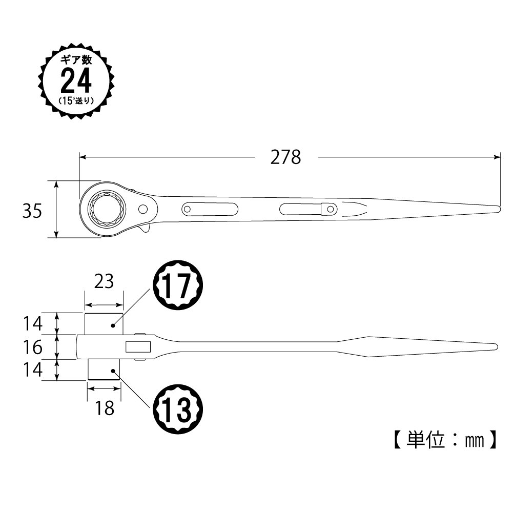 ● Lightweight and efficient double-end ratchet wrench