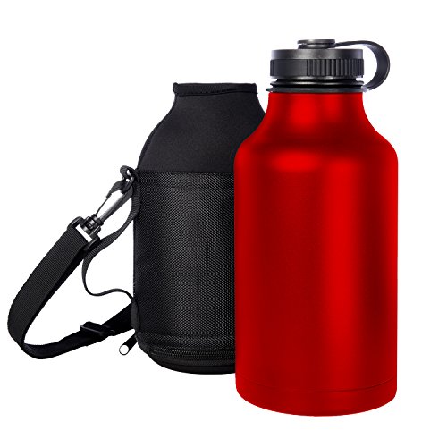 Ivation 64 oz. Insulated Water Bottle & Beer Growler – Carrying Pouch Included – Choose Red, Silver, Or Black