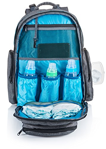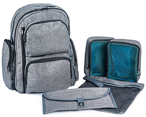 EXTRA LARGE CAPACITY! The Bably Baby diaper backpack has a total of 14 usable pockets that can hold all of your essential baby items as well as your wallet, laptop, keys, and other mommy and daddy items. The backpack has two main compartments, three large front pockets, and two side pockets. We've had numerous parents say this backpack was plenty big enough for their plane travels with two children. HANDS FREE! Diaper backpacks are the ideal choice because it allows you to carry all of your essential baby products while having both hands free. This diaper backpack also has built-in stroller straps to hook onto any stroller. STYLISH UNISEX DESIGN! No more needing to convince your hubby to carry the diaper bag. Dads love this gender neutral backpack! We've added extra padding to the back and shoulder straps of this backpack so it will be comfortable all day. 0